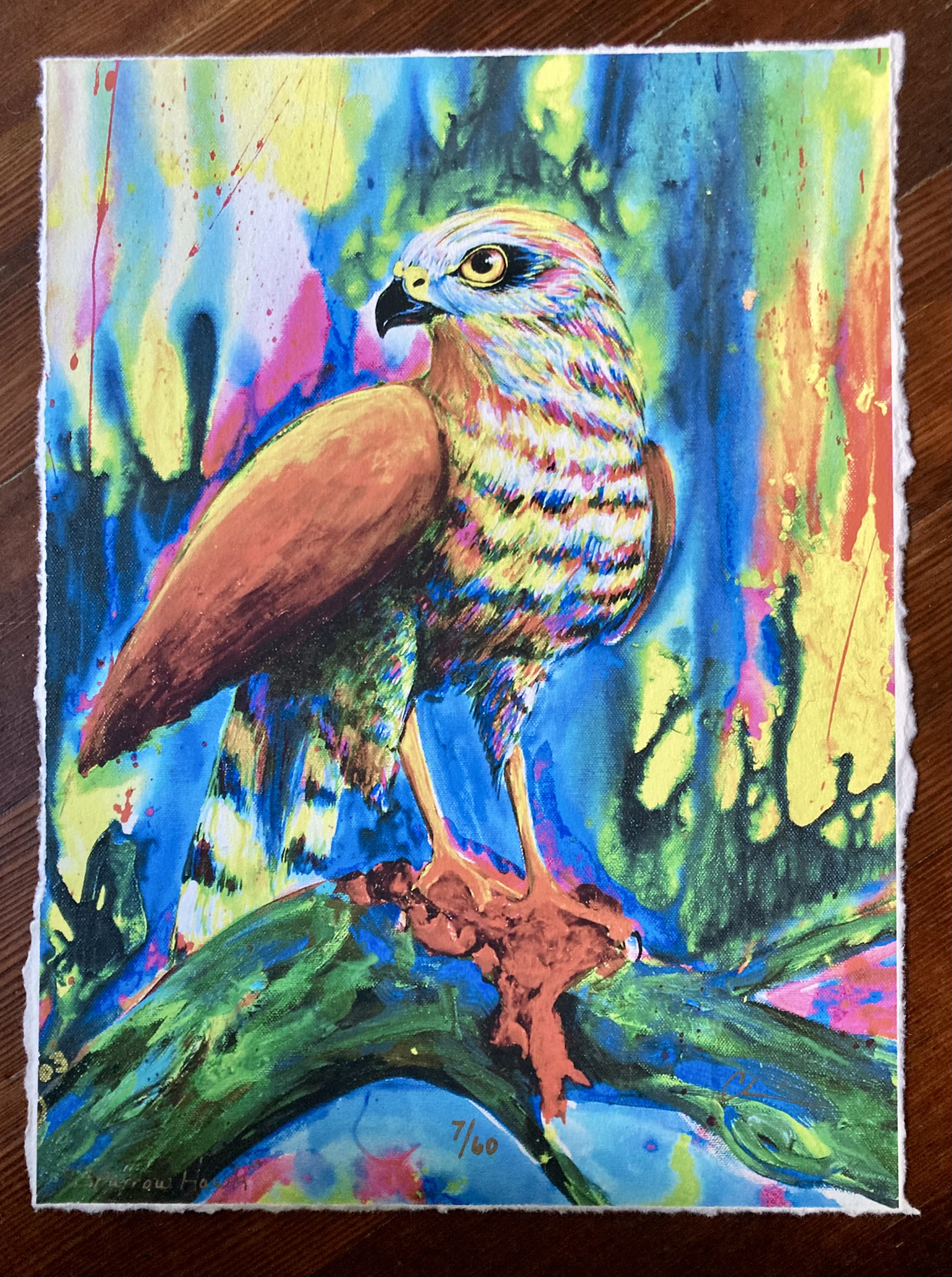 “Sparrow Hawk” is a signed and numbered limited edition of 60 giclée print on watercolor paper. Image size is 10.5” x 13.5” with deckled (hand torn) edges.