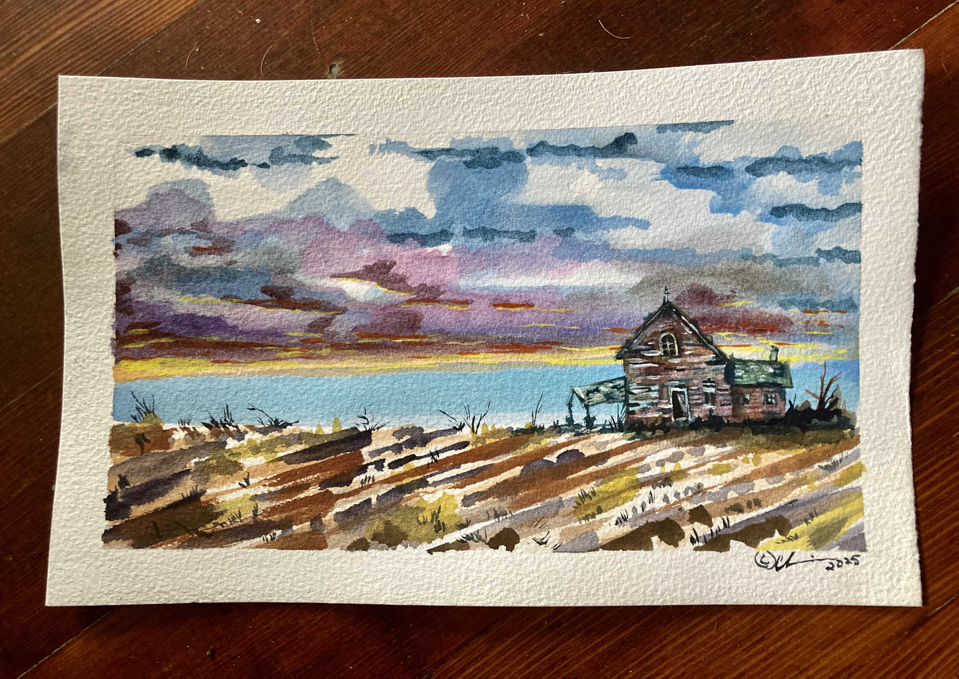 “The Little Farmstead That Could" is an original watercolor on watercolor paper. I do daily watercolor paintings. This is one.