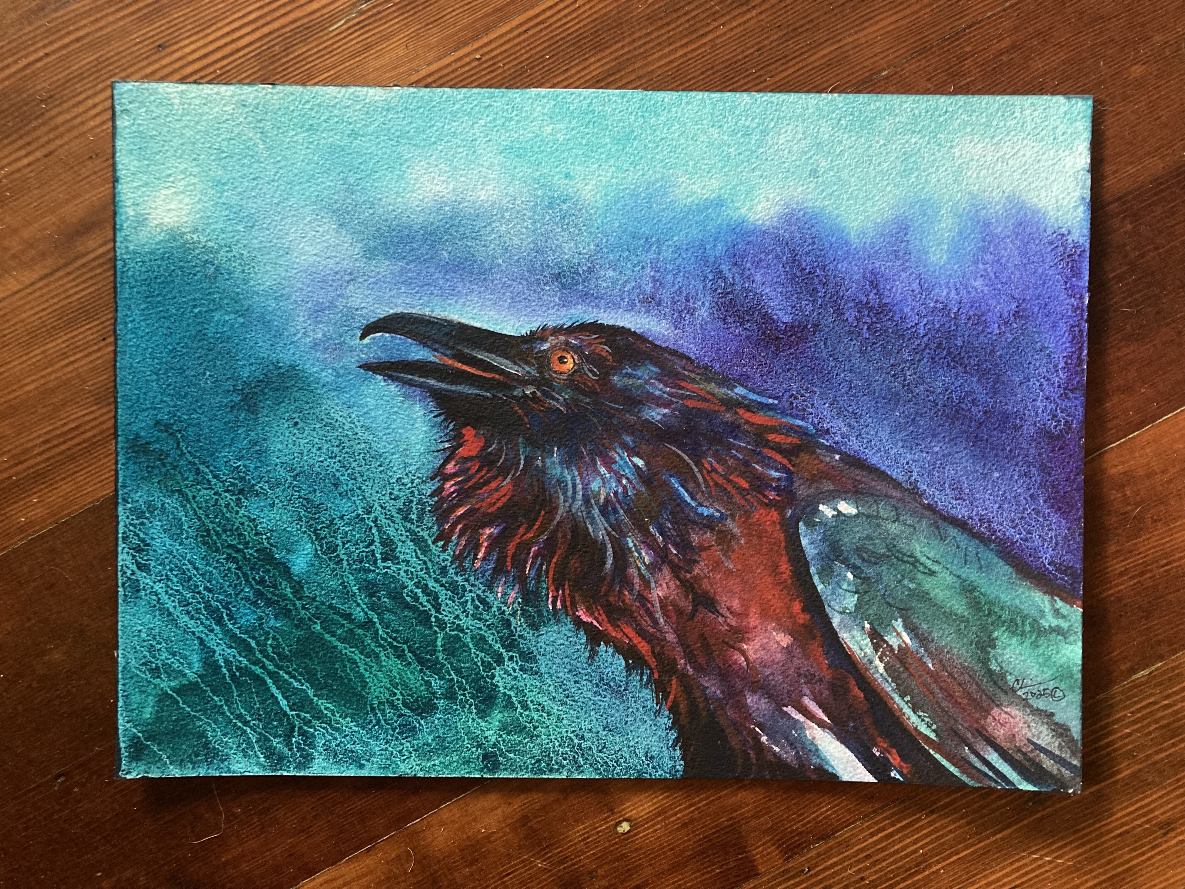 “Look Who’s Calling" is an original watercolor on watercolor paper. I do daily watercolor paintings. This is one.
