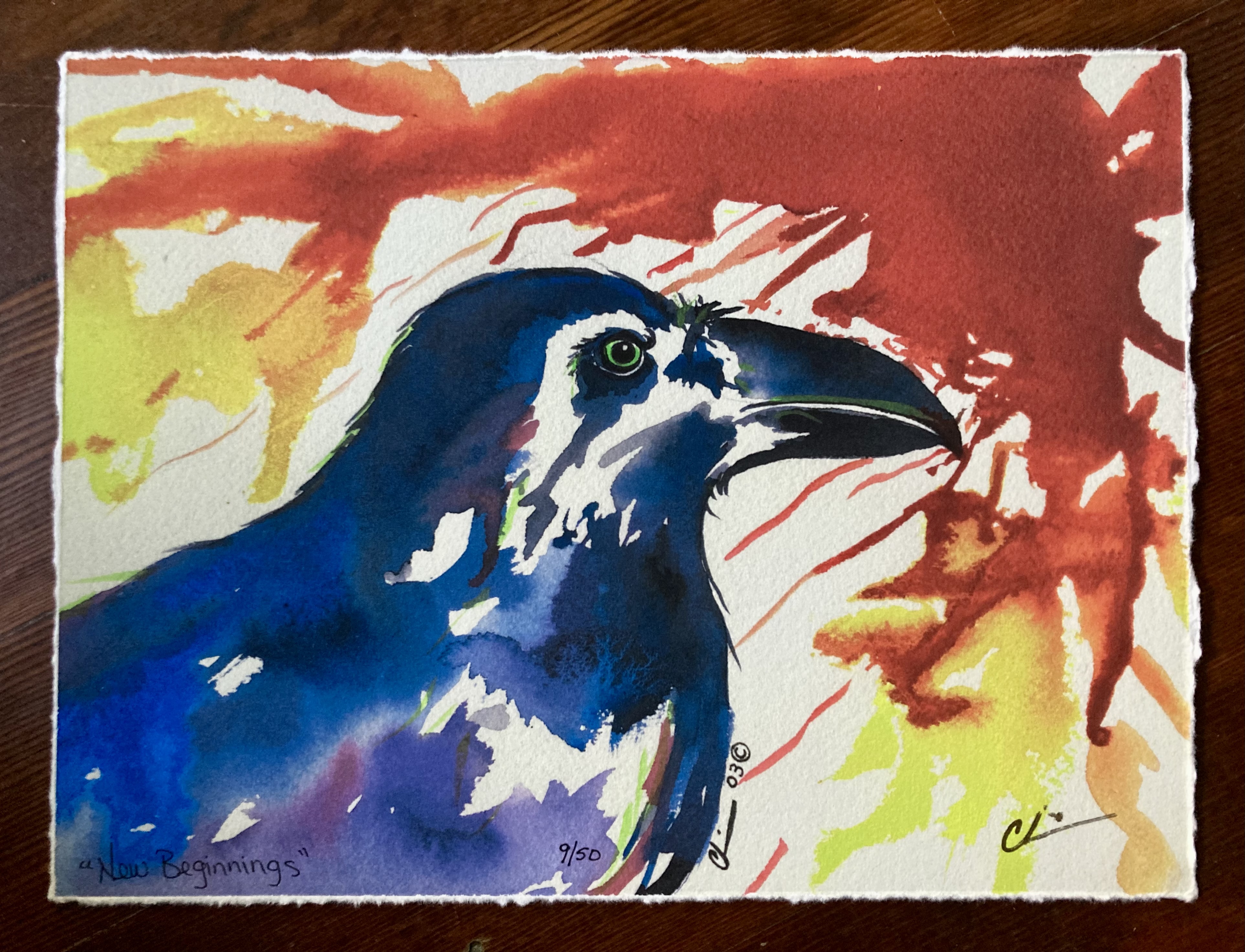 “New Beginnings” is a signed and numbered limited edition of 50 giclée print on watercolor paper. Image size is 9” x 12” with deckled (hand torn) edges.